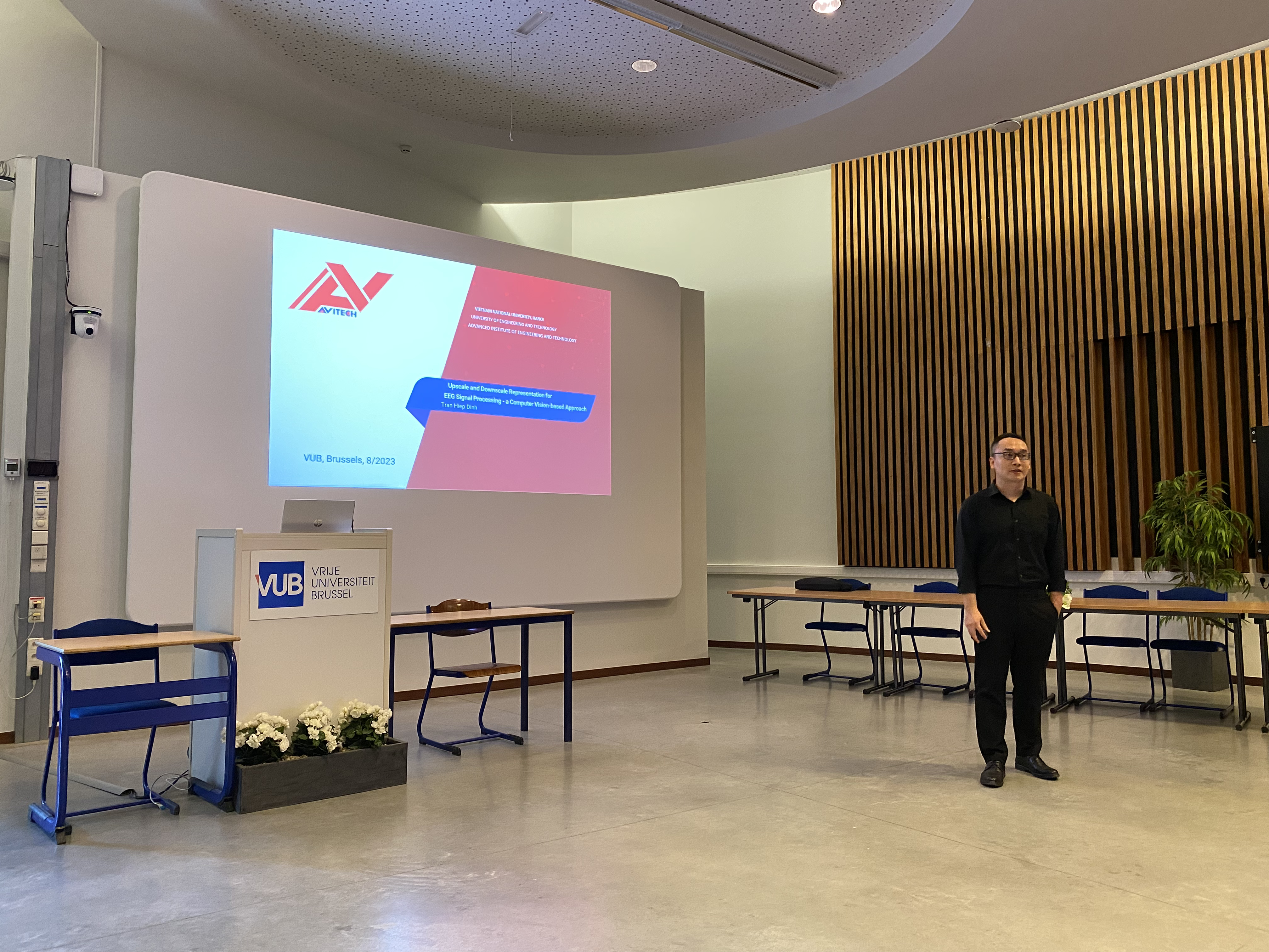 In August-September 2023, Prof. Nguyen Linh Trung and Dr Dinh Tran Hiep visited the Artificial Intelligence Supported Modeling in Clinical Sciences (AIMS), Centre for Neurosciences, Free University of Brussels (VUB), Brussels, Belgium. During their stay, several collaboration opportunities were discussed with Prof. Guy Nagels, chair of AIMS, and his VUB colleagues.