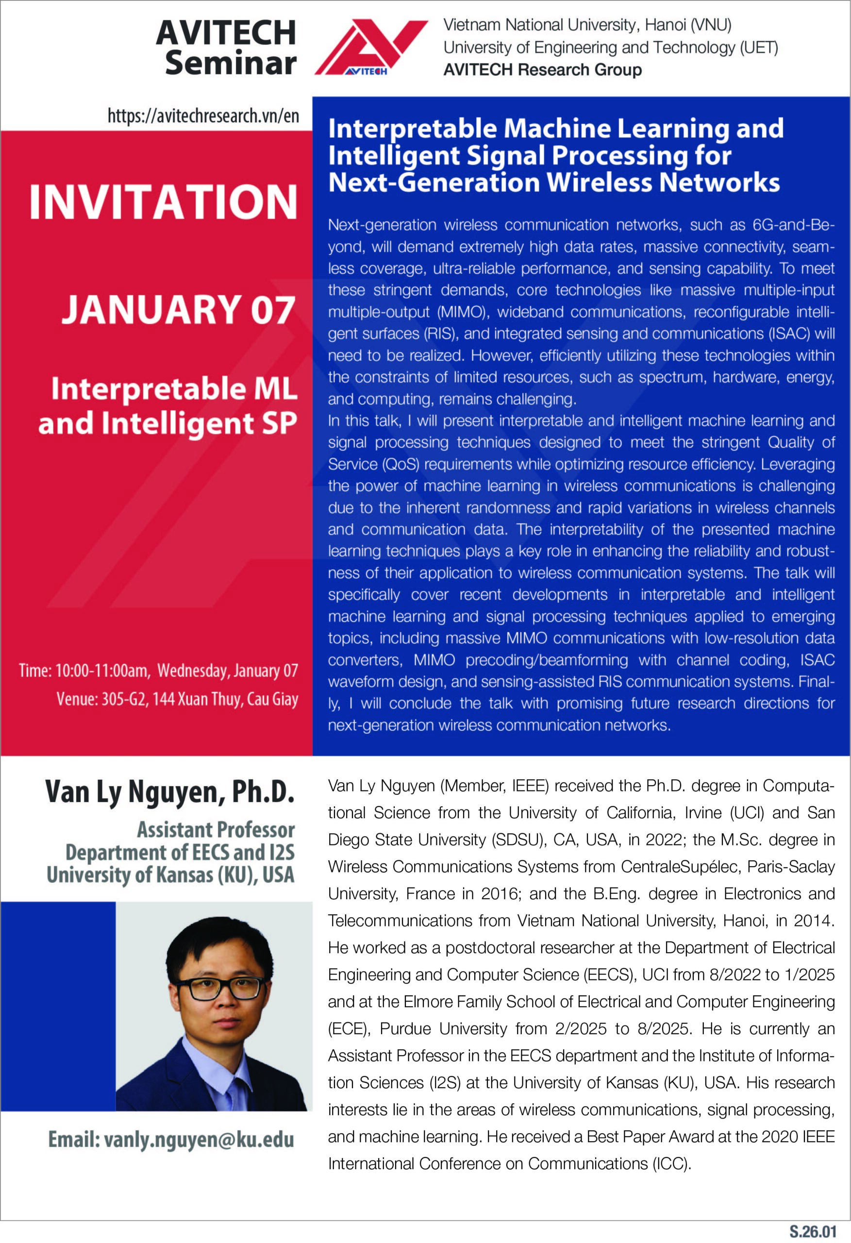 AVITECH Seminar: Van Ly Nguyen, PhD (University of Kansas, USA)