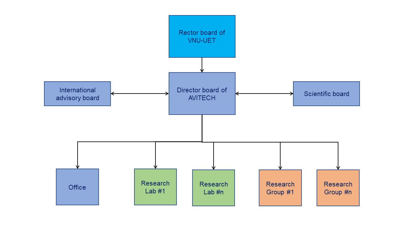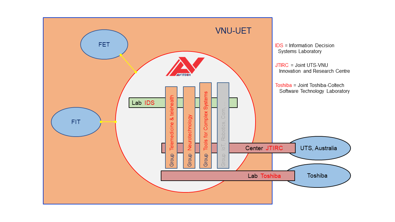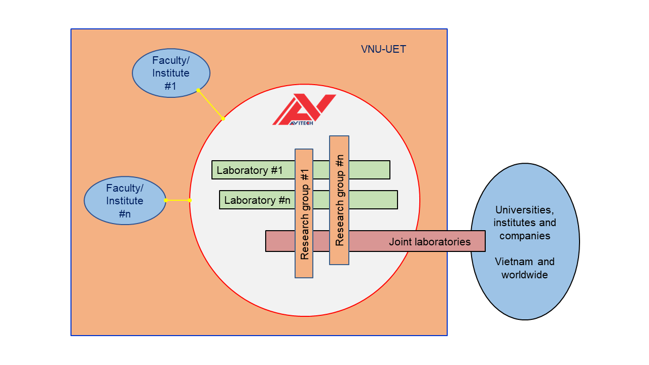 AVITECH aims to build and develop an open environment at VNU-UET for better gathering researchers across different fields and attracting substantial resources, in order to synergistically conduct interdisciplinary and advanced research that contributes to scientific advancement, technological innovation and human resource development of VNU-UET, with high quality and impact.