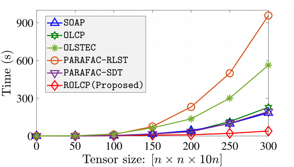 OLCP (2016): S. Zhou et al. “Accelerating online CP decompositions for higher-order tensors,” ACM Int. Conf. Knowl. Discover. Data Min., 2016.