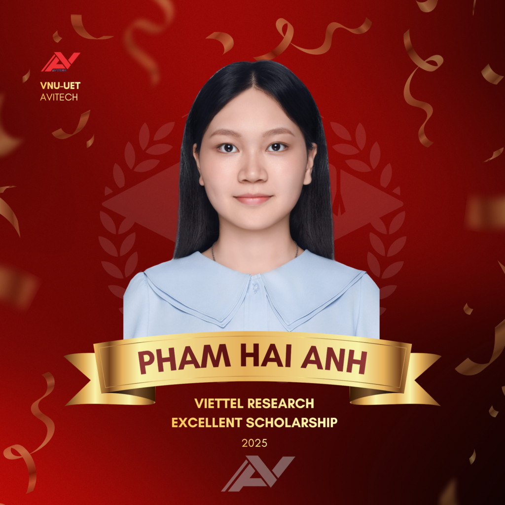 Phạm Hải Anh bày tỏ niềm vinh dự khi được trao học bổng Viettel Research và xem đây là bước khởi đầu cho một trách nhiệm lớn lao hơn với khoa học. Hải Anh gửi lời tri ân đặc biệt tới thầy Nguyễn Linh Trung – người đã định hướng con đường nghiên cứu – cùng tập thể AVITECH vì đã tạo dựng một môi trường học thuật cởi mở, gắn kết và hỗ trợ lẫn nhau.